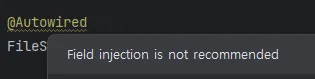 프로젝트의 주된 주입 방식은 Field Injection 방식으로 이루어져 있다
