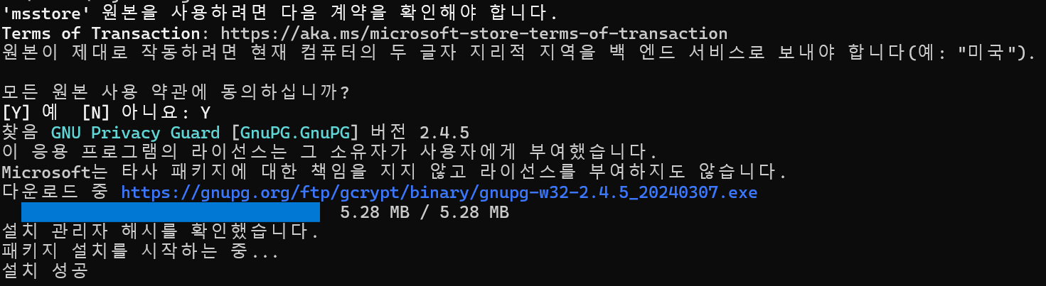 만약 gpg를 찾을 수 없다는 문구가 뜬다면